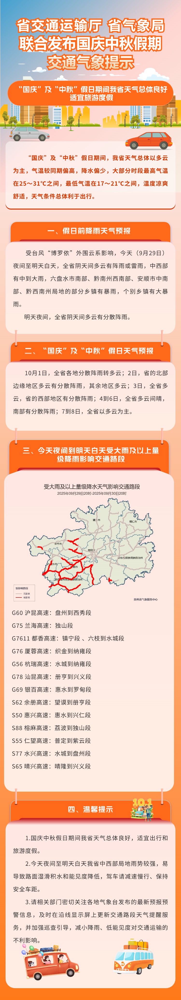 【气象提示】“国庆中秋”假日期间我省天气总体良好 适宜旅游度假