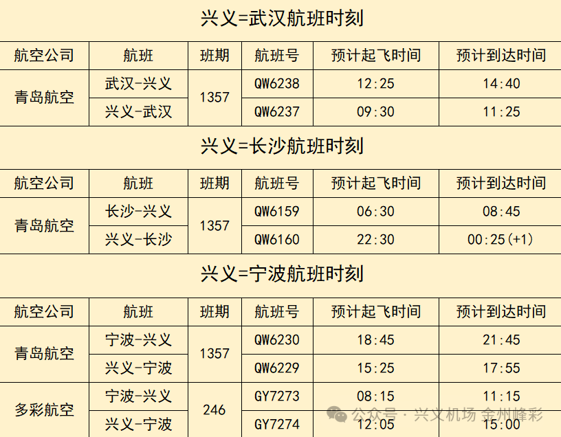 为进一步满足广大旅客的出行需求,完善航线网络布局,兴义机场将于12月3日开通武汉、长沙航线,加密宁波航线!从此,邂逅“江城”韵味、畅游“星城”烟火、漫步“港城”海滨,都将变得轻松便捷。
