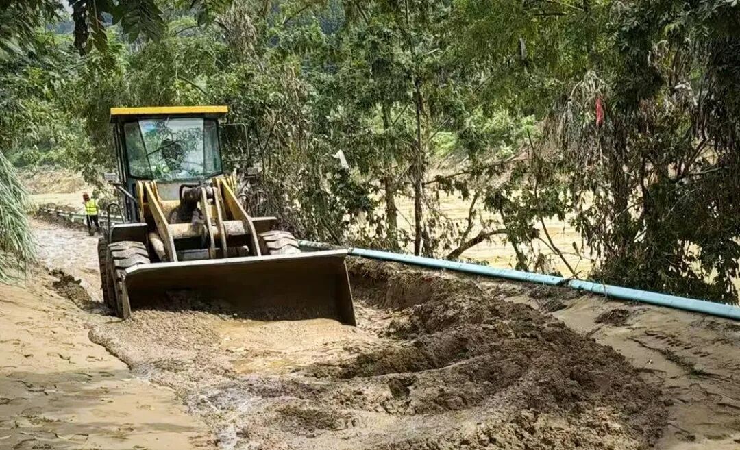 因G76厦蓉高速猴子河特大桥因山体滑坡发生垮塌,交通、通讯中断,黔南三都县通往黔东南榕江县、从江县方向需绕行G321国道。作为通往县城的唯一生命通道,项目境内道路多处塌方掩埋,救援车辆、抢修力量受阻。三都3标立即组织力量勘查路况,排除风险隐患后,迅速调集8台挖掘机、4台装载机,昼夜不停投入抢通战斗,同步封闭危险路段、设置警示标志。经过24小时不间断奋战,全力抢通救援通道,为电力、通讯、应急抢险等单位后续抢修工作打开了关键通道。