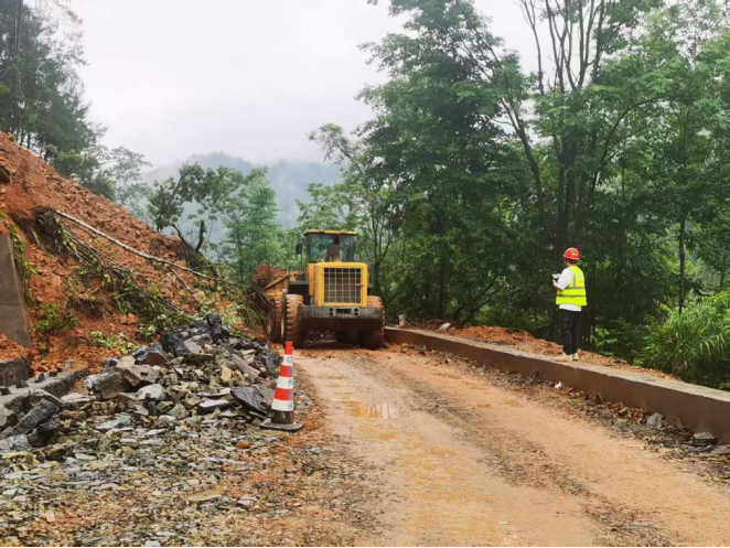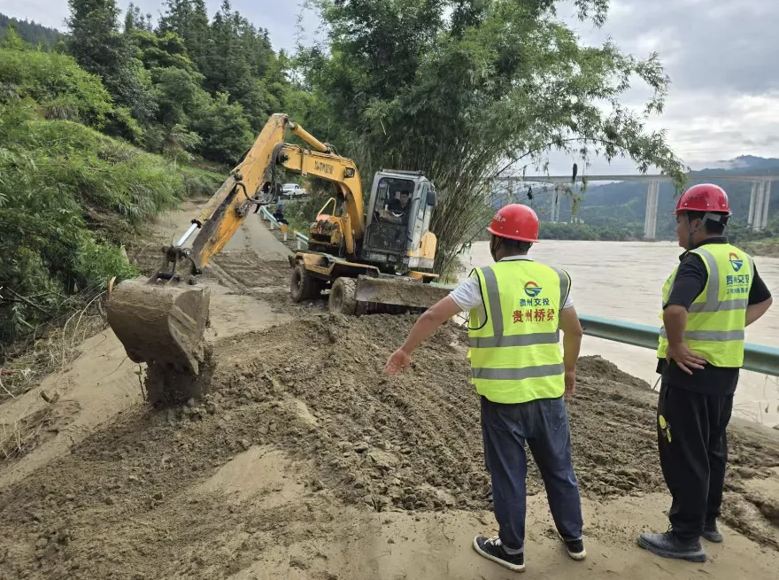 贵州桥梁集团有关负责人奔赴现场指挥调度,共派出突击队员32名,调配装载机4台、挖掘机4台、工作车辆9辆火速赶往灾区,全面摸排公路受损情况,目前正全力推进道路抢通工作。
