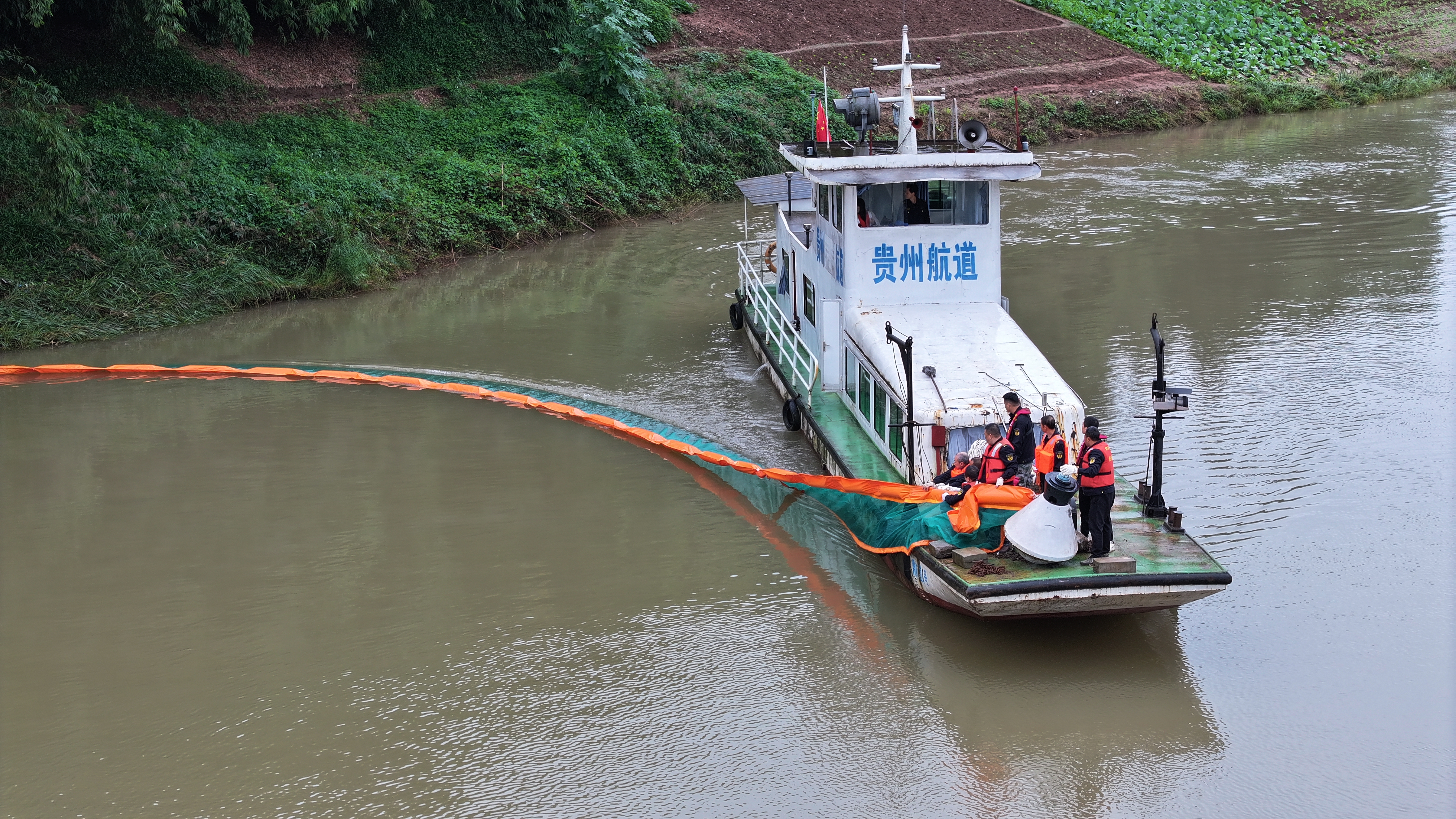 作为2023年以来赤水河航道首个绿色养护项目,该项目被纳入《2024—2030年度赤水河航道绿色养护技术方案》中26处滩险治理内容之一,标志着赤水河航道养护全面迈入“生态优先、绿色发展”的新阶段。施工过程中,创新引入多项绿色防护措施:布设防污帘以阻断污染物扩散,定时定点开展水质动态监测,启用专业驱鱼设备引导鱼类远离施工区域,最大限度降低疏浚作业对水域生态环境的影响。