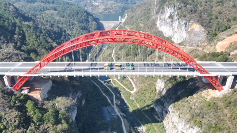 由贵州桥梁集团大通公司承建的马场河特大桥,位于贵州省贵定县盘江镇马场河村,大桥全长381.5米,为主跨260米的中承式钢管混凝土桁架拱桥,桥面设计为双向六车道。
