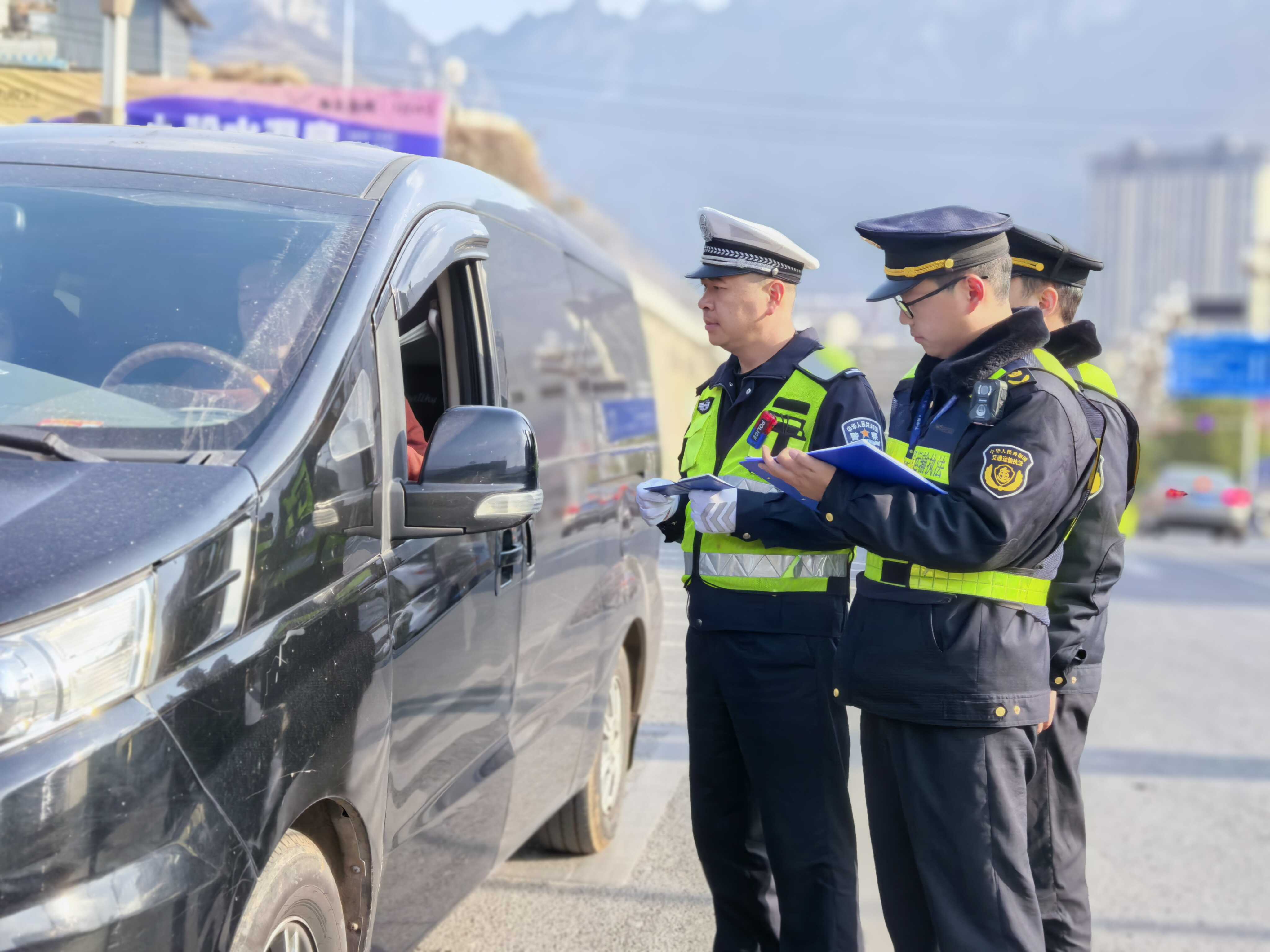 “您好,我们是交通运输综合行政执法人员,请出示您的道路运输证和从业资格证。”“交警例行检查,请配合检查。”在辖区各主要收费站、重点路段,这样的联合执法场景每天都在上演。