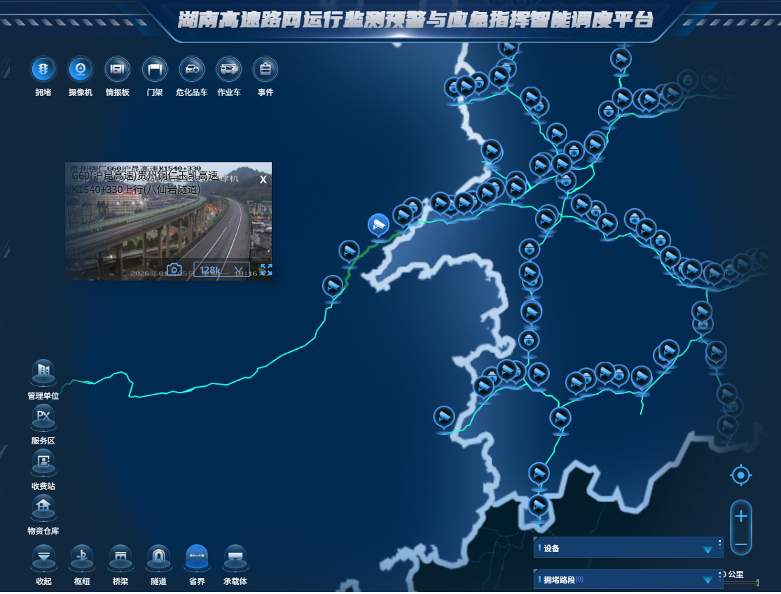 贵州省交通运输厅、湖南省交通运输厅为提升G60数智走廊交通协同效能,提高跨省路网运行管理与应急处置能力,联合牵头组织贵州高速集团、湖南高速集团以及铜仁分中心、怀化分公司、湘西分公司及相关技术支撑单位协同发力,以路网运行监测平台为核心支点,系统推进两省平台网络互联、数据互通,于2026年1月5日顺利完成湘黔两省路网指挥调度平台图、数共享工作,取得良好成效,为后续跨省业务深度协同和G60数智走廊打造奠定了坚实基础。