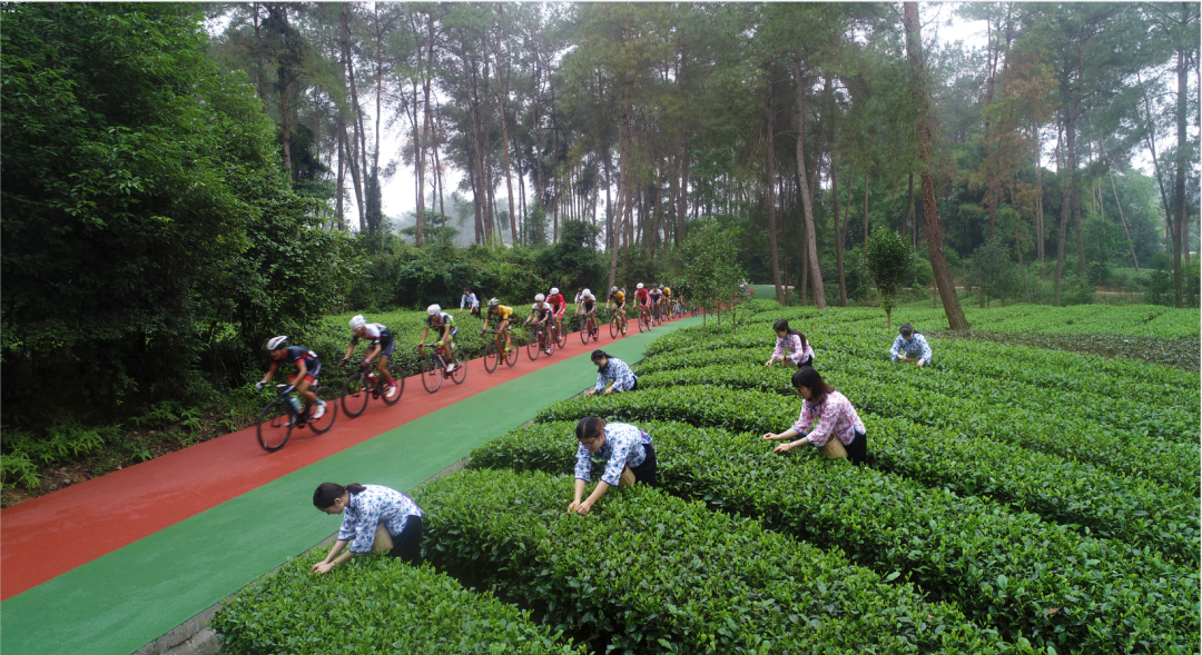 广西南宁市金花小镇金花茶产业核心示范区入园主干道。