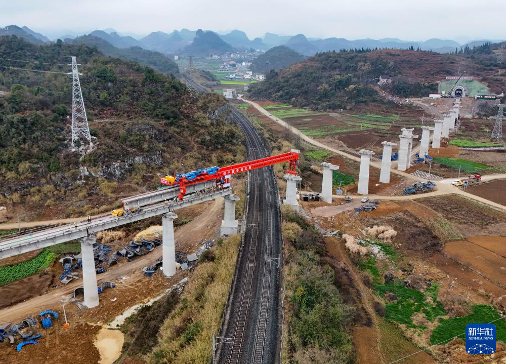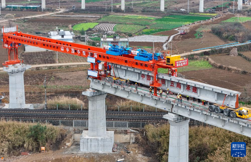 2月13日拍摄的T梁架设现场(无人机照片)。