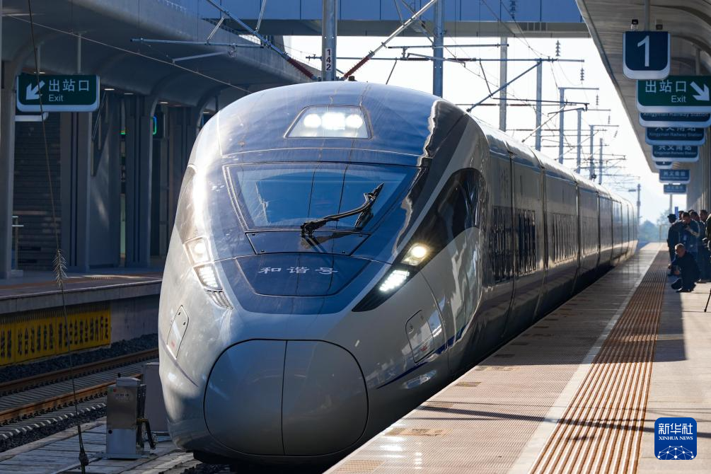 11月28日,盘兴高铁首发列车G5356次从兴义南站驶出。新华社发(龙建睿摄)