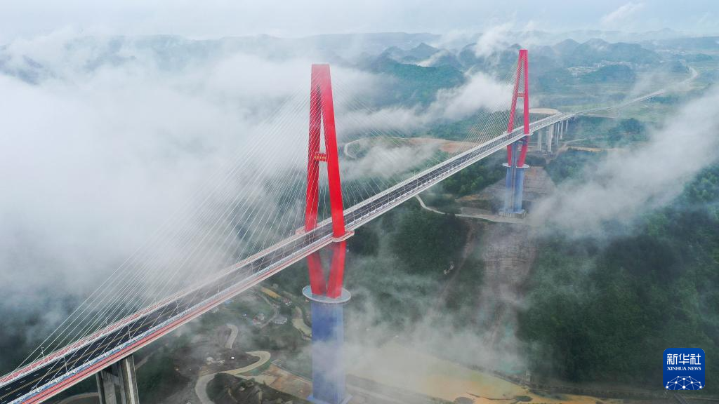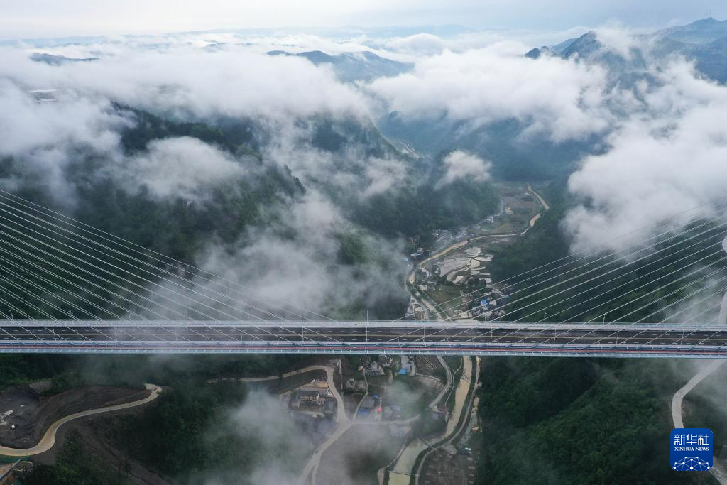 这是4月27日拍摄的雨后的贵州龙里河大桥(无人机照片)。新华社记者 杨文斌 摄