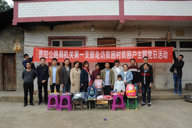 10月24日,贵阳公路管理局机关第一党支部开展“走访贫困村贫困户”志愿帮扶主题党日活动。当天一早,支部全体党员、预备党员、入党积极分子一行9人,带着一分浓厚关爱、一份期待的心情,前往开阳县楠木渡镇黄木村,看望和慰问2户贫困家庭及3名贫困儿童,并与村委会成员一起共同过组织生活会,共同学习党的十九大精神,相互交流为贫困儿童进行志愿帮扶事宜等,全力为脱贫攻坚工作贡献一名普通党员的力量,鲜红的党旗一直飘扬在前方……