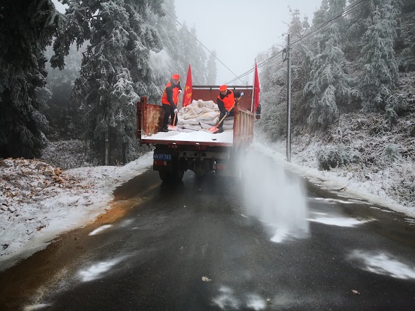 锦屏县交通运输局在农村公路上撒盐除冰 刘松平摄