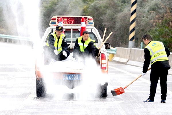截止目前,全州出动路政、养护人员839余人次,巡查车辆212辆次,共铺撒除冰工业盐115.7吨,巡查维护道路5173公里,安防提醒提示标识432处。最大限度避免了因凝冻而引发的道路交通事故。