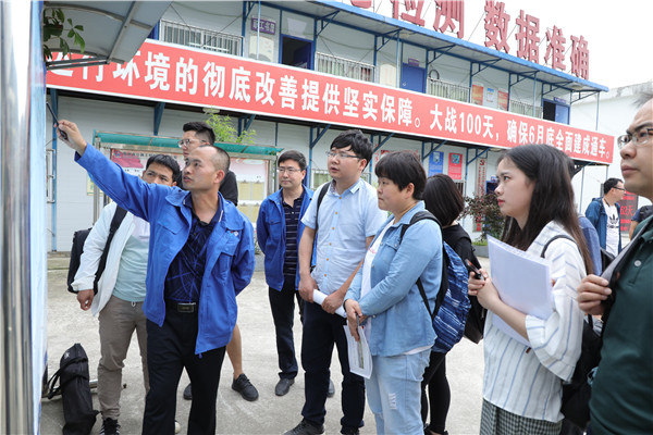 项目经理石继光(前排左一)介绍项目建设重大意义