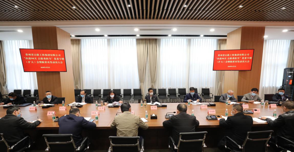 闻令而动,建功六月;拼尽全力,体现担当。4月3日下午,贵州公路集团在503调度会议室召开“决战90天 公路勇担当”党委专题(扩大)会暨脱贫攻坚动员大会,要求集团上下必须把脱贫攻坚作为当前最大政治责任和最重要工作,深入贯彻落实党中央、贵州省委和省交通厅党委有关脱贫攻坚的各项决策部署,克服新冠肺炎疫情影响,聚焦主要矛盾,抓住核心环节,紧盯突出短板,谋划重点任务,以更大决心、更强力度推进脱贫攻坚工作,坚决夺取脱贫攻坚战全面胜利,坚决完成这项对中华民族、对人类都具有重大意义的伟业。