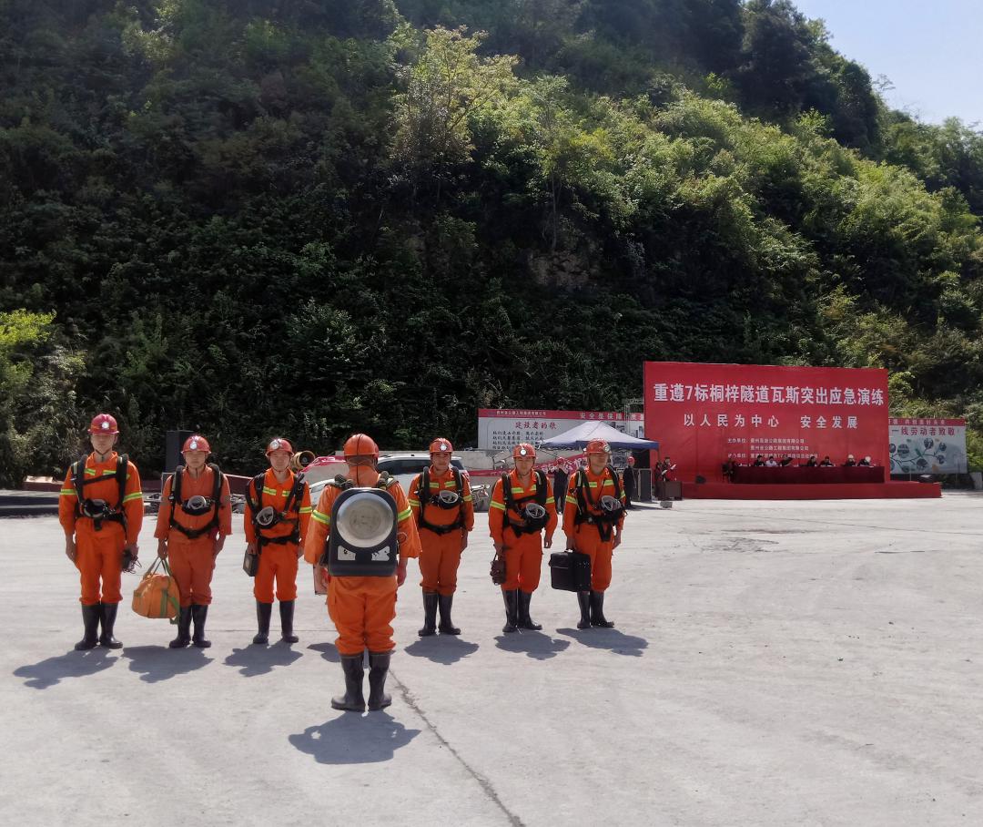 本次演练场地重遵7标桐梓隧道是贵州省内第一长隧道。作为兰海高速重遵扩容项目的控制性工程,桐梓隧道瓦斯含量高,隧道多次穿越煤层,存在极大的施工安全风险。