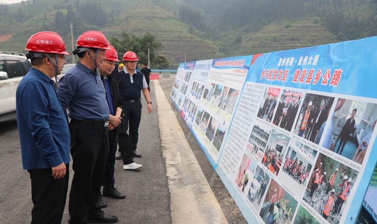 邵勋(左二)在从江县丙妹镇大歹村乡村旅游公路项目建设工地调研