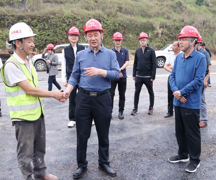 邵勋在从江县农村公路沿途看望“五一”期间仍然坚守岗位的施工人员和养护队员