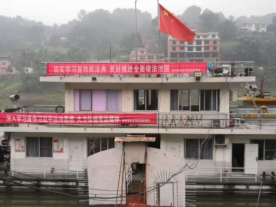 赤水河航道管理局在码头、执法船等悬挂宣传横幅