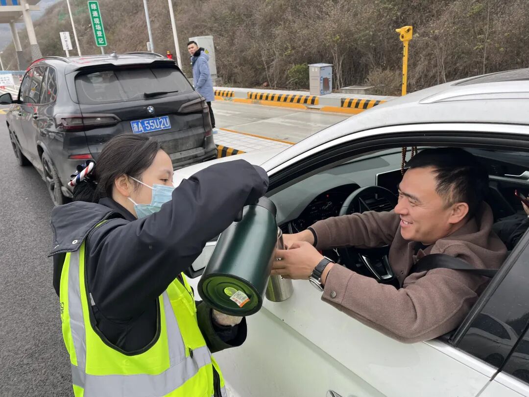 遵义营运中心依托智能化监测系统,对桥梁、隧道等重点路段实施“线上+线下”全天候巡查与温度监控,实现对路面状况和凝冻风险的实时精准把控,为科学决策与提前干预提供了坚实依据,切实将预警预防做在前端。面对凝冻险情,中心坚持“预防与处置并重”,建立起高效的协同处置机制。在收费站、服务区设立“暖心服务点”,组织职工为滞留司乘提供热水、雨伞、方便食品、应急药品等必要帮助,切实解决群众途中急难问题。
