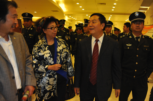 省交通运输厅党委书记彭伯元与书画名家交流(右二)。