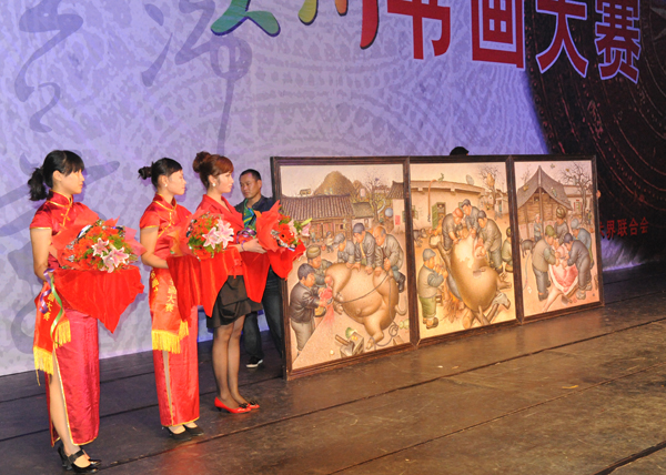 本次大赛通过省内外书画界专家评审和大众网络人气投票的方法,最终有414件作品入围。其中,《路标-NO.1》获国画类金奖、《杀年猪之一》系列获油画类金奖;书法类作品金奖空缺;中国画、油画、书法类作品银奖9名、铜奖17名、优秀奖60名、入围奖131名,最佳人气奖各1名。