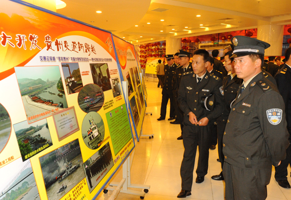 “交通运输杯”多彩贵州书画大赛系列活动之一的贵州交通运输行业十年发展成就展览在贵阳大剧院大厅展出。