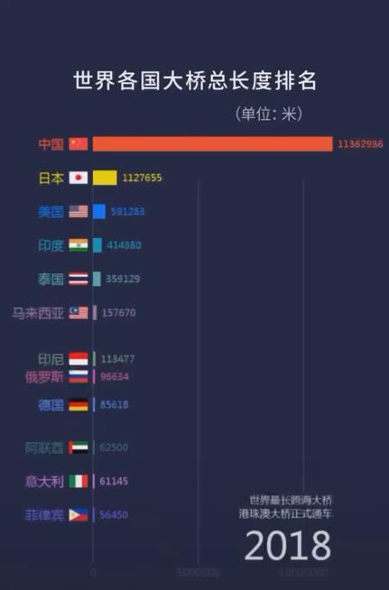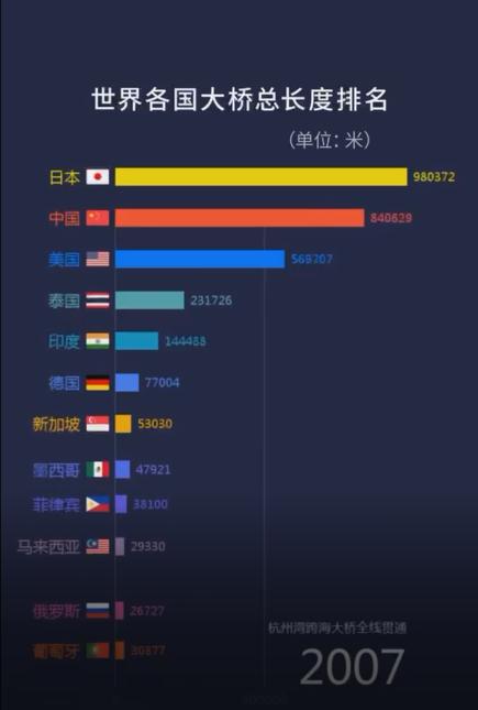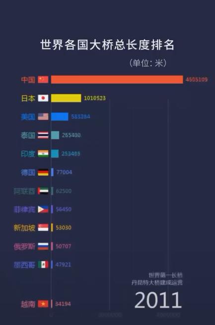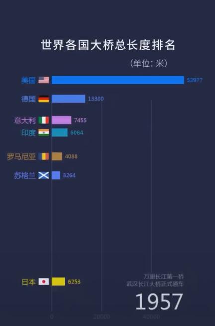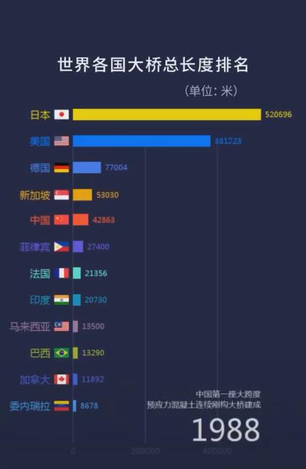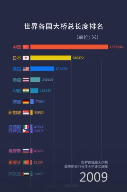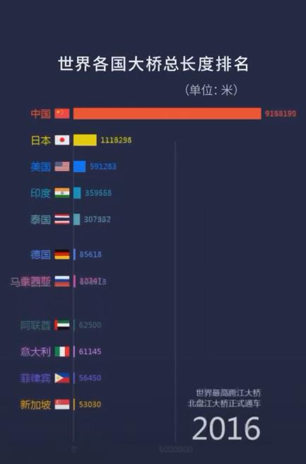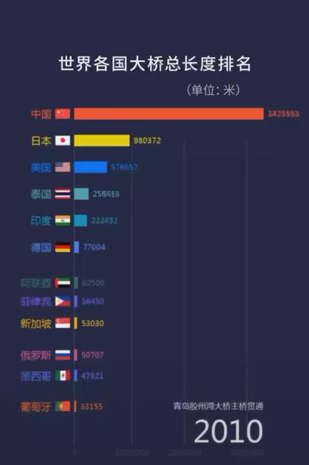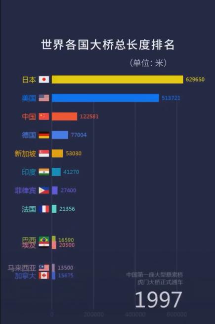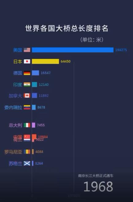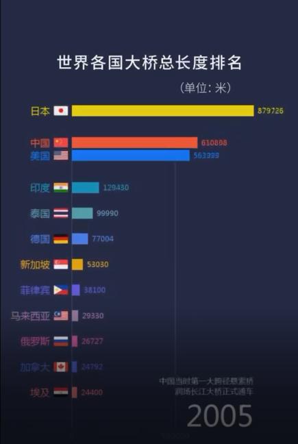 这一年,中国桥梁总长度一脚跃进排行榜前十。