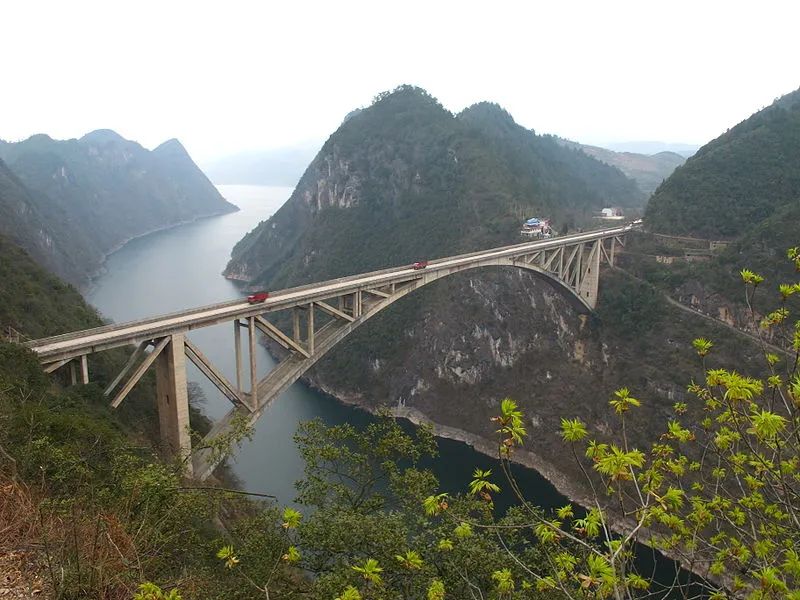 2、世界上首座采用箱型拱结构的特大型拱桥,主拱截面高达9米,宽5米,为世界最大的主拱截面;