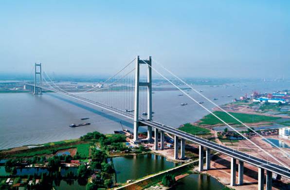 润扬长江公路大桥于2000年10月20日开工建设;2004年6月1日全线贯通;2005年2月2日主体工程基本竣工;2005年4月30日正式通车。全长35.66公里。建成时其跨度位列中国第一、世界第三,也是中国当时第一大跨径悬索桥。