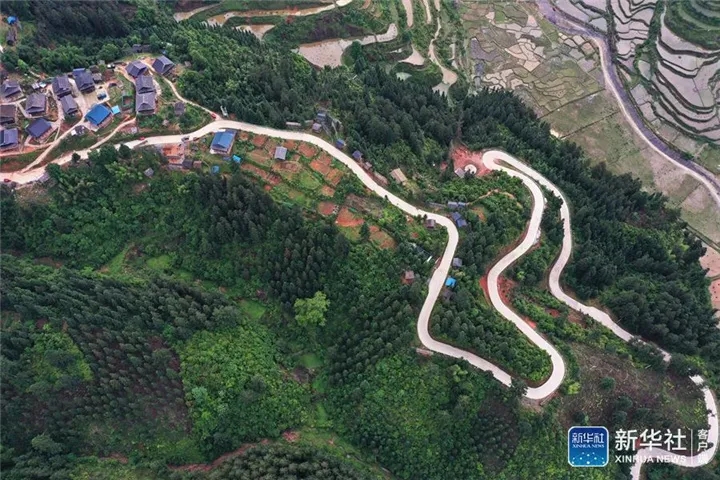 2021年5月6日,在贵州省从江县丙妹镇大歹村拍摄的乡村公路(无人机照片)