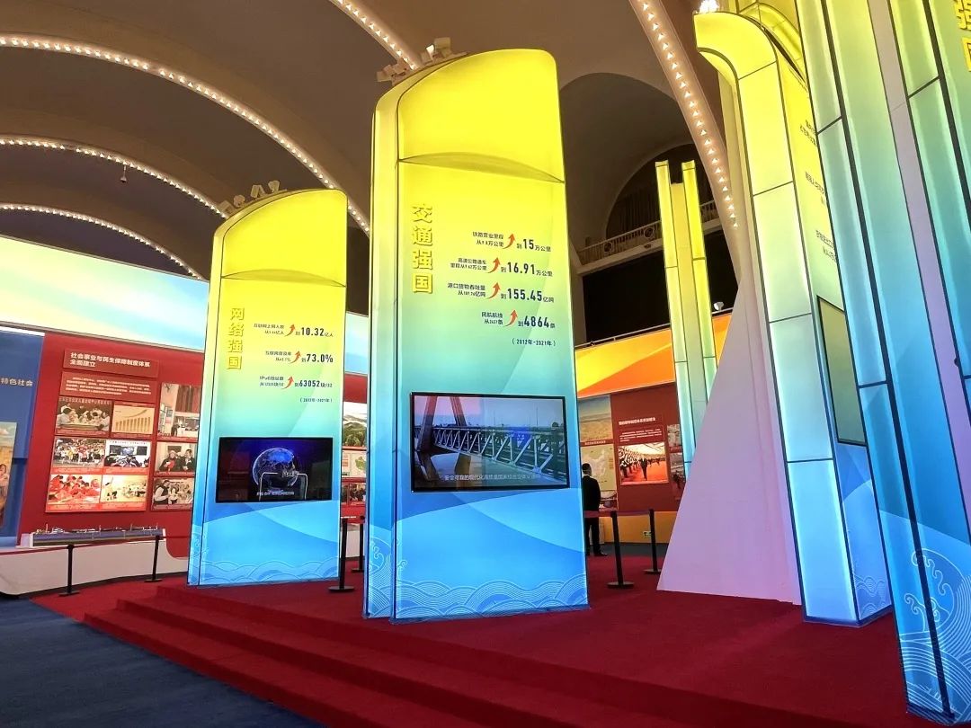 不完全统计,成就展中交通要素达320项。这是继2019年“伟大历程辉煌成就——庆祝中华人民共和国成立70周年大型成就展”54项交通要素参展后,交通运输在北京展览馆的又一次精彩亮相。