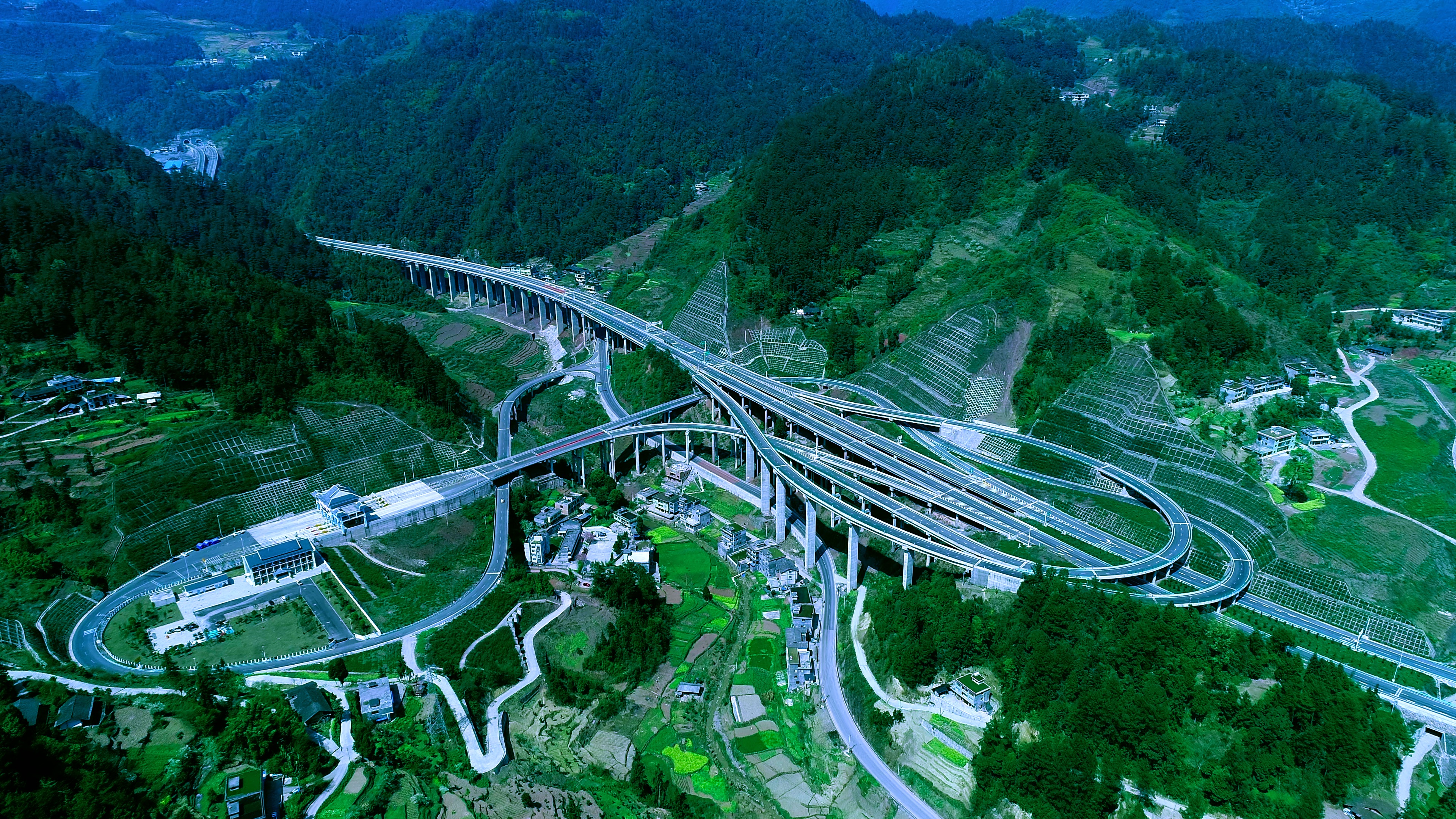 蓝天为布,青山作廊,崭新的高速公路犹如一条巨龙,于崇山峻岭间蜿蜒而过。在巍巍山峦中,森林、湖泊、溪流与公路遥相呼应,大美黔地一派和谐生态的自然图景。