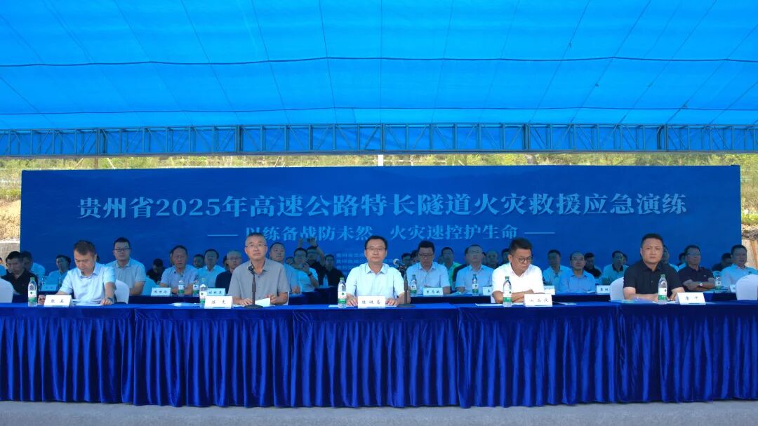 9月12日,由贵州省交通运输厅、贵州高速公路集团有限公司主办的贵州省2025年高速公路特长隧道火灾救援应急演练成功举办。贵州省交通运输厅党委委员、副厅长陈健蕾,贵州高速集团党委副书记、副董事长、总经理陈虎观摩演练并讲话。