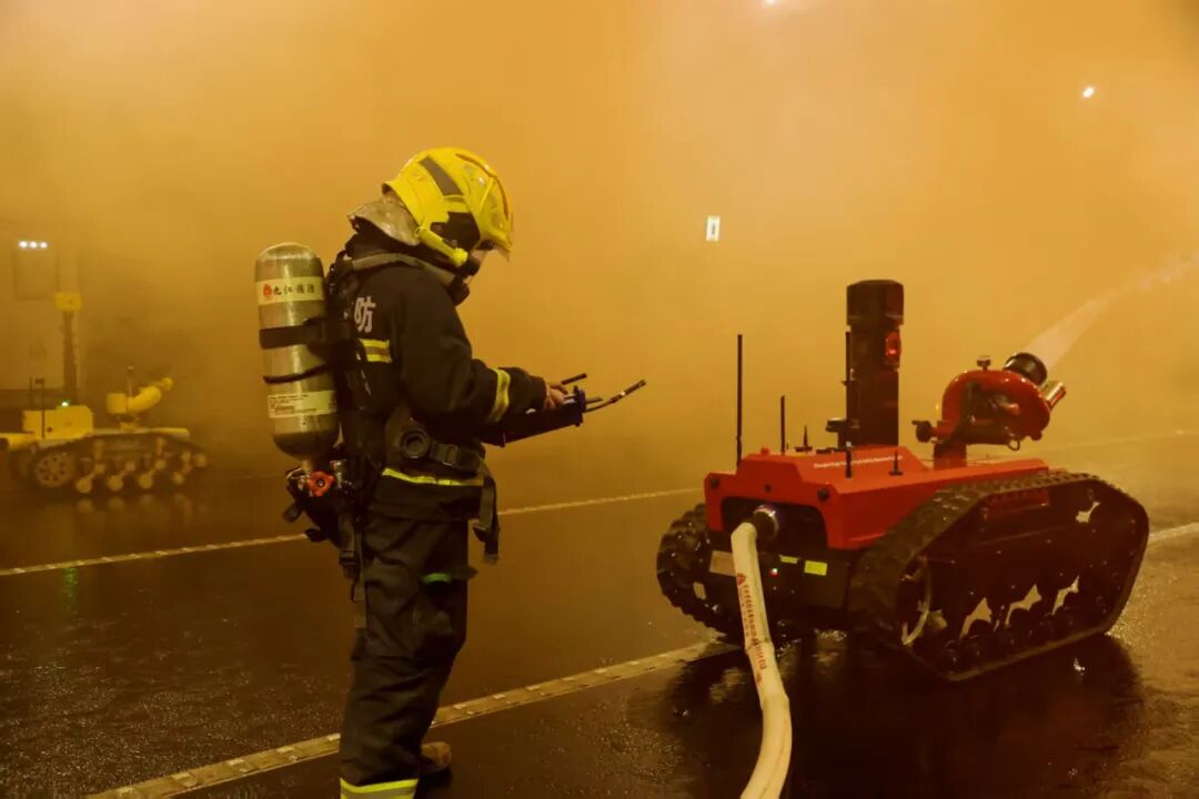 作为演练核心的“隧道火灾救援”实战环节,大娄山隧道群志愿消防队与属地消防队紧密联动,深度融合信息报告、应急启动、交通管制、抢险救援、舆情管理等多项任务。与以往相比,本次演练增加了灭火机器人、隧道消防车等高精尖装备人装结合,对着火区进行泡沫覆盖、攻坚作战、消灭火势。火情扑灭后,在专业技术人员的指导下,对隧道内受损的照明、通风、监控设备进行检修;确认无安全隐患后,解除交通管制,恢复隧道通行,应急响应按程序终止。全面检验各参与单位在应急指挥、技术应用和协同处置等方面的能力。