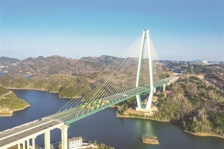 1月13日,贵安扩容高速控制性工程百花湖大桥顺利完成荷载试验,标志着该桥通过通车前全面“体检”,为全线通车奠定基础。百花湖大桥全长1086米,大桥主塔采用钢筋混凝土钻石形空间塔,塔高219米。建成后,贵安扩容高速将成为贵州省第一条智慧高速。