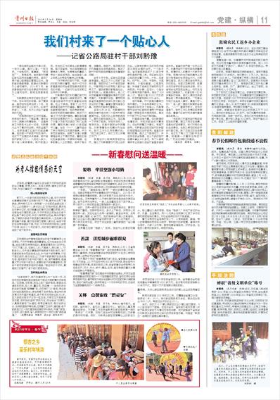 2015年2月26日,贵州日报以“我们村来了一个贴心人”为题报道我厅驻村干部刘黔豫的驻村工作事迹全文如下: