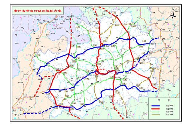 为贯彻落实党的十六大提出的全面建设小康社会的总体要求,有计划、有步骤地建设好我省境内的国家重点公路和国家高速公路,优化国道主干线、国家重点公路和国家高速公路与其它主要公路之间的衔接,更好地指导新世纪我省的骨架公路网建设,我厅编制了《贵州省骨架公路网规划(2003~2020)》。我省骨架公路以全省所辖地(州、市)、县(市)政府驻地为节点,连接各地(州、市)、县(市)政府驻地、区域经济中心、重要交通枢纽以及军事战略要地、主要的工农业生产基地、能源工业基地、主要旅游风景名胜区、航空港、铁路枢纽,与邻省(区、市)的干线公路顺畅连接,使我省的公路网融入到整个大区域路网中,起到连接东西、沟通南北的作用,彰显我省的区位优势和在西南地区的交通枢纽地位。